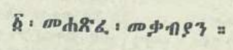 ![]() 1 Maccabees: 16th-17th c. Ge'ez Version (likely translated from the Vulgate) - in Ge'ez (possibly canonical for Ge'ez-rite Catholics) | ፩ ፡ መጽሐፈ ፡ ዘመቃብያን ። ዐይን: Francisco da Bassano: Bəluy Kidán (Asmara: Ba-Máh̬otama Fránchaskáno, 1915), vol. 4 (scan courtesy of Abdelmasih Almanhatani) |